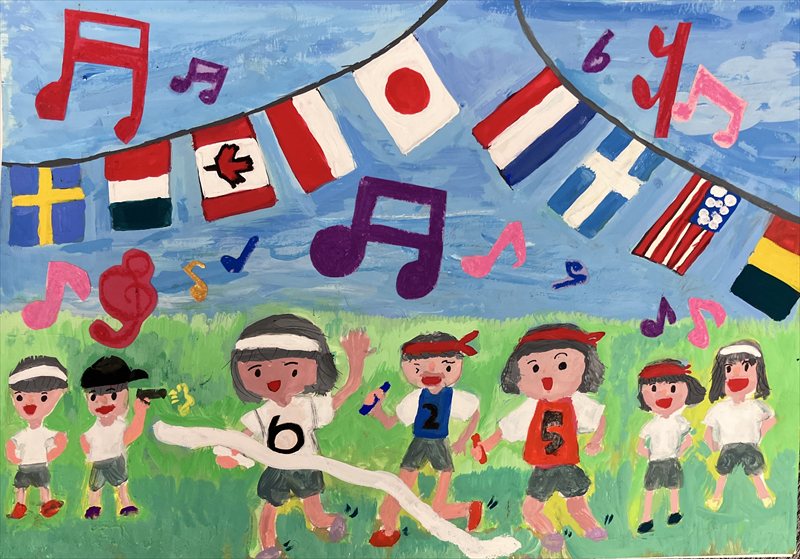 大うんどう会!応えんの声、はく手、がっきの音、ピストルの「バーン!」、走っている時の地面をける音。うんどう会には、パレットの絵具みたいに、たくさんの音色があふれているようでした。